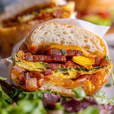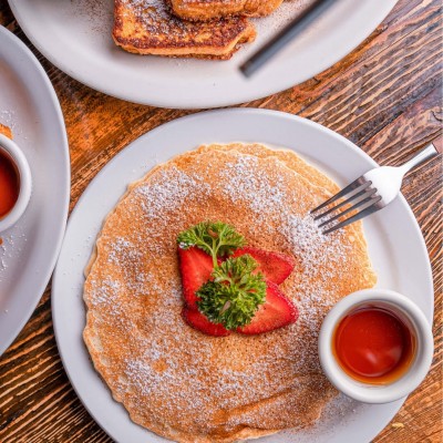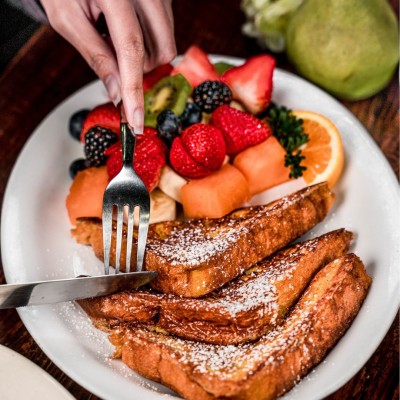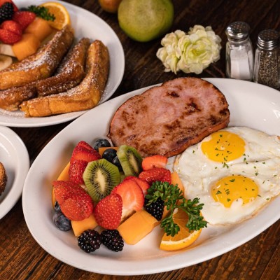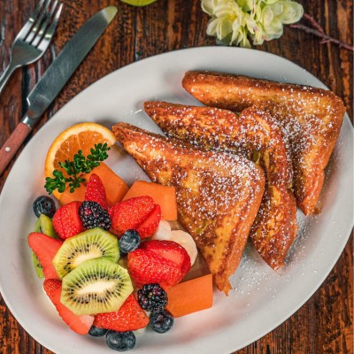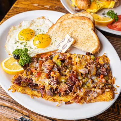 We love to serve a healthy breakfast with lots of fresh fruit, but also have items such as our breakfast pizza - hash browns under scrambled eggs, bacon, sausage, and more - that we know will satisfy.